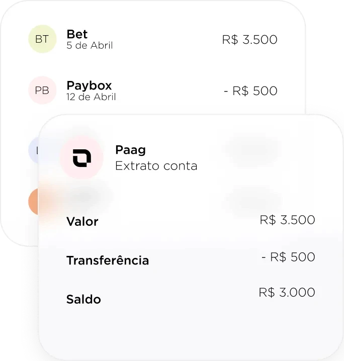 O Paag Finance é uma plataforma operacional com inteligência financeira aplicada. Você gerencia todas as movimentações da sua operação em um só lugar: com conciliação automatizada, relatórios em tempo real, alçadas configuráveis e muito mais. É a experiência bancária que entende o seu setor sem os limites das soluções tradicionais.